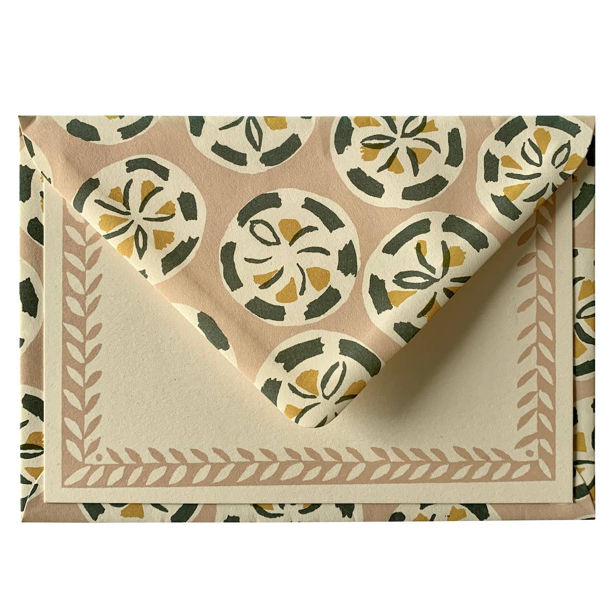 A packet of ten simple cards with a patterned border. 105 x 148 mm. Suitable for use as a postcard, note card, label or place card. A match for our Patterned Envelopes in Charleston Roundel.