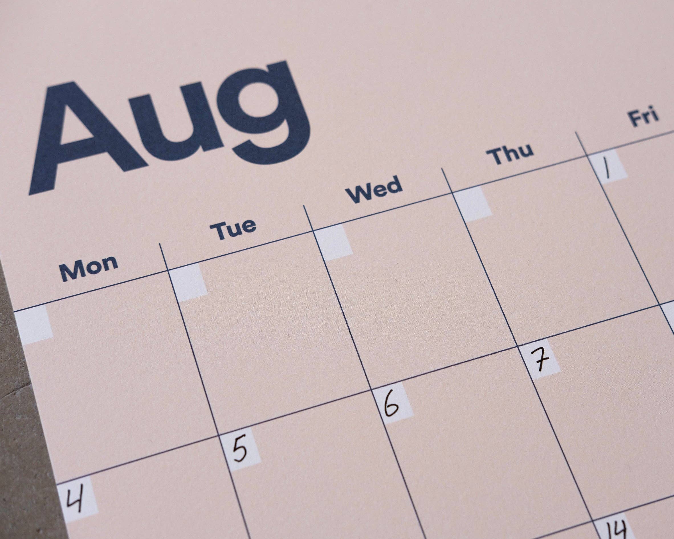 A3 Undated Wall Calendar Light Beige