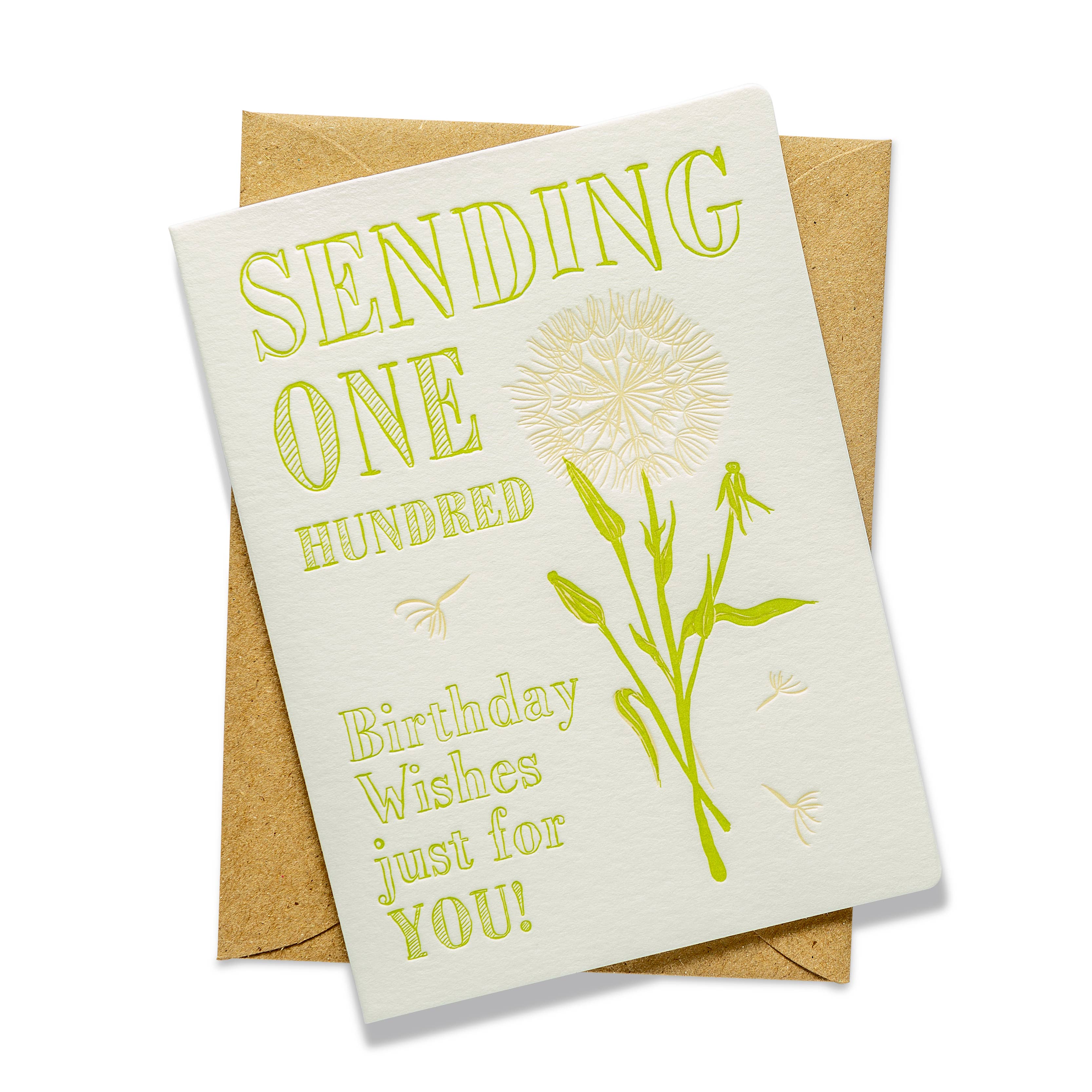 Send your warmest wishes with a touch of whimsy and elegance, capturing the essence of a carefree wish blown into the wind with our Dandelion Birthday card! "Sending one hundred birthday wishes just for you!"