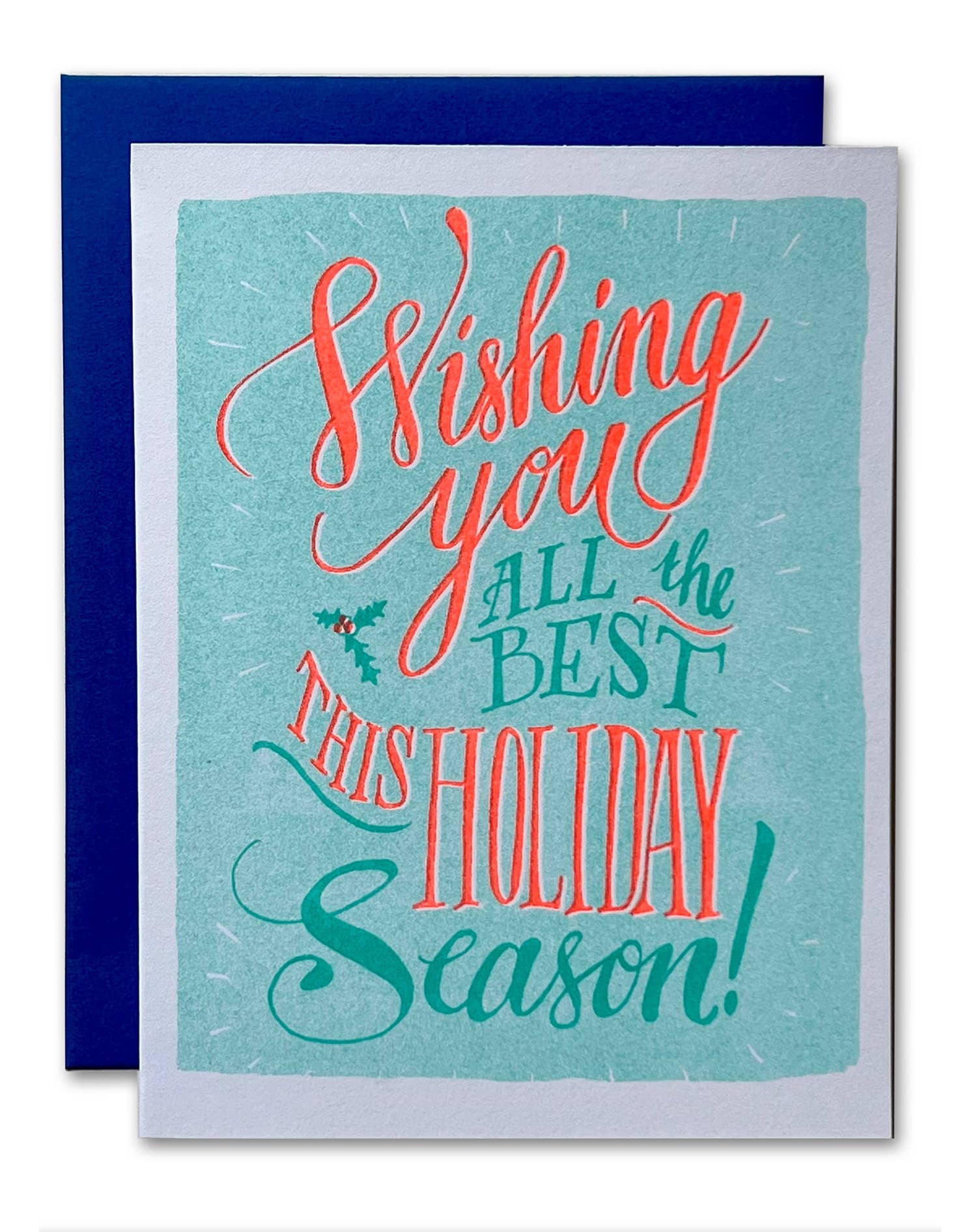 Whether your definition of "the best" during the holidays is a great parking spot at the mall or creating new traditions with loved ones, this risograph-printed card hits the mark!