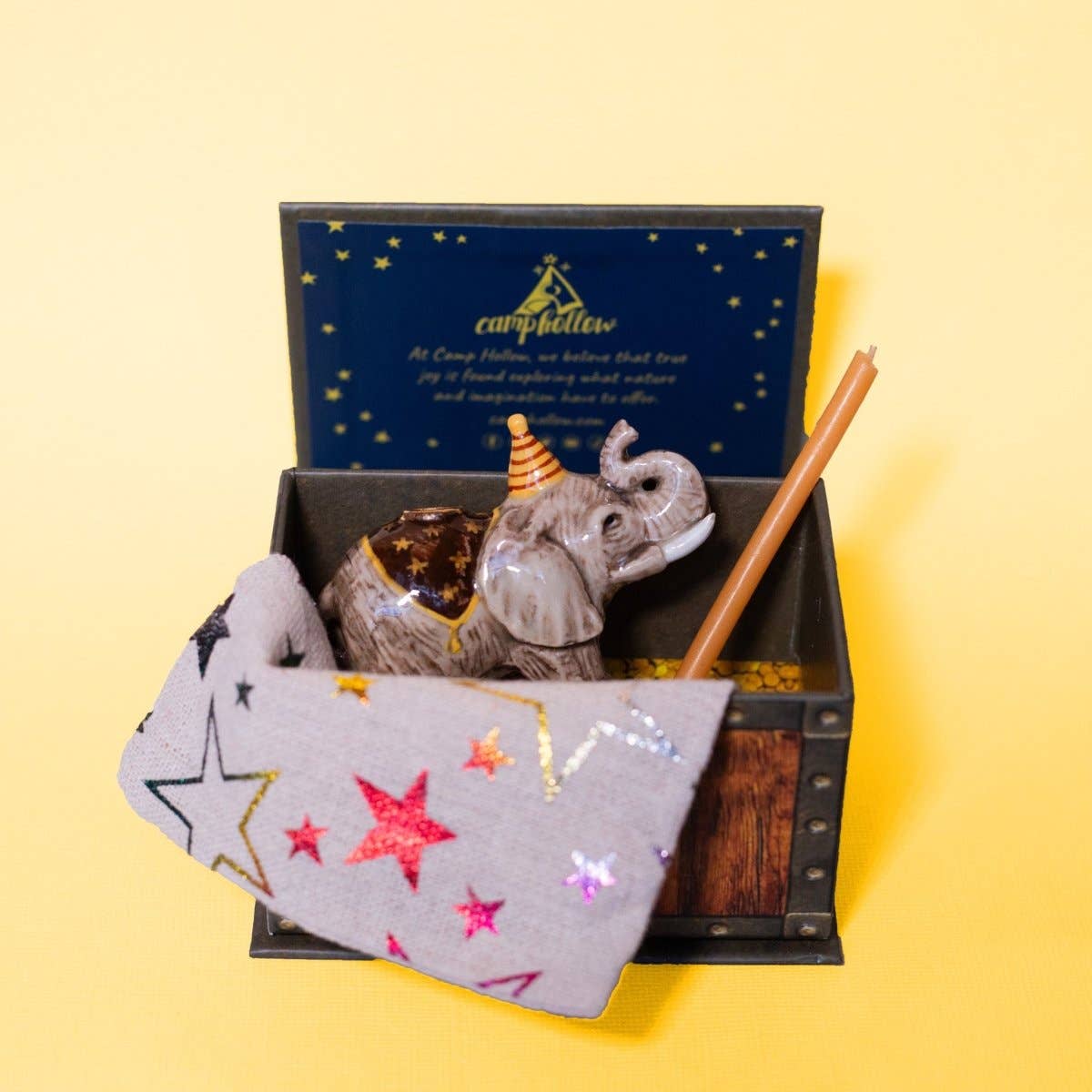 ⛺️ Designed at Camp Hollow, all our cake toppers are made to reflect the personality of the animals they portray. We wouldn’t want to toot our own trunks but we’re very pleased with how this party animal turned out! From his elegant tusks to powerful stance, one thing’s for sure, this elephant has party presence!