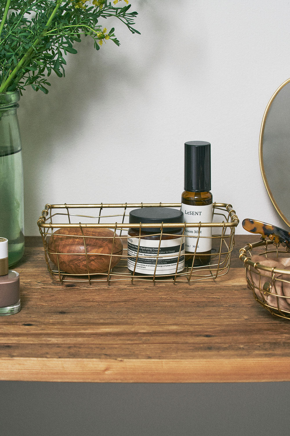 This shallow, wide handmade basket crafted from gold wire offers a stylish way to keep small items organized on desks or at entryways. Ideal for holding daily essentials, it brings both function and beauty to your space.