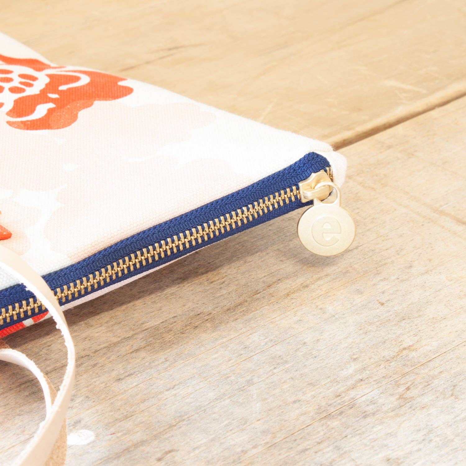 Material: Heavy Cotton Canvas, Leather Details, Brass Zipper + Pull