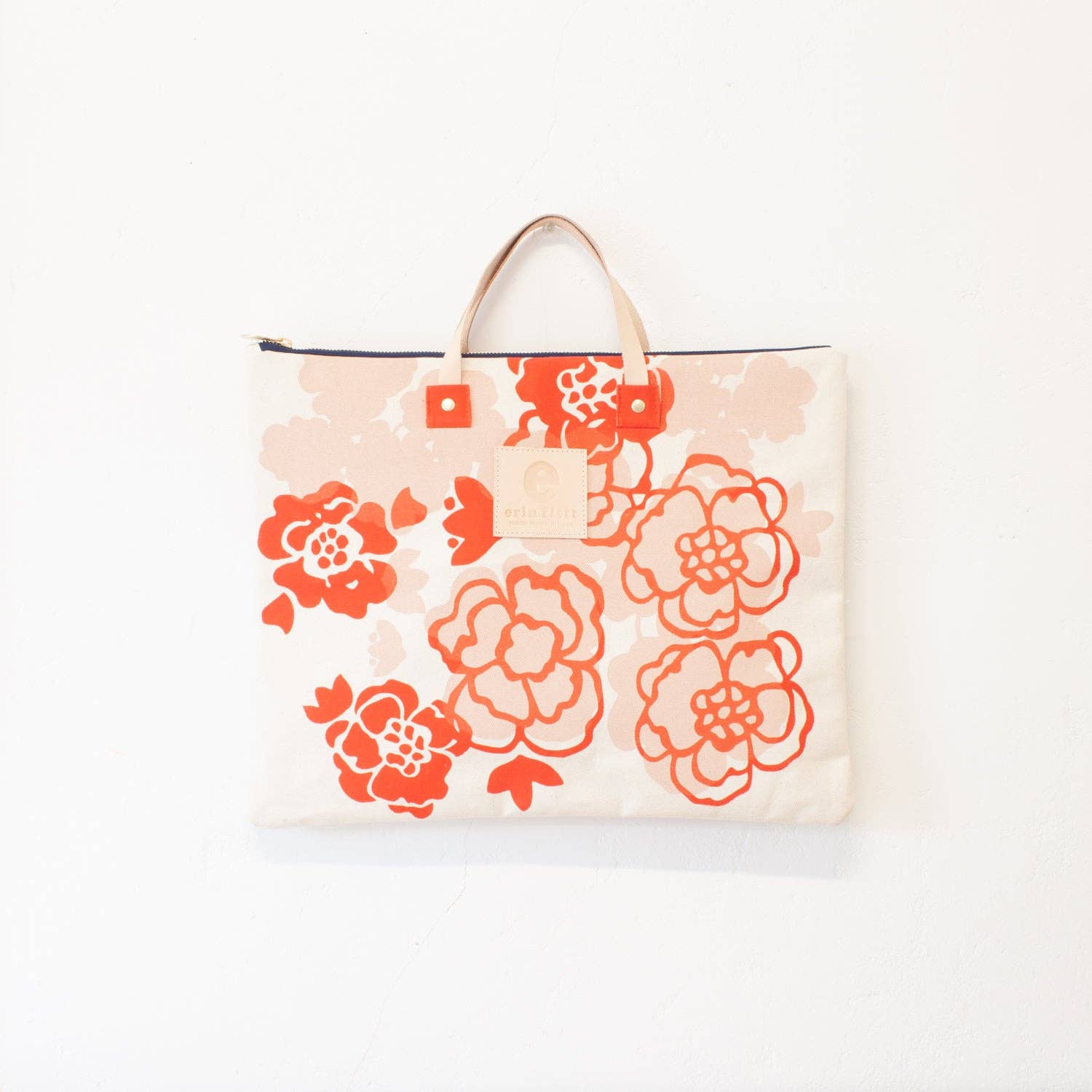 The quality in the details is something you will see and feel. We look at every opportunity to make these beautiful and practical. Great bag for carrying folders, your laptop, notebooks and more. Durable heavy-duty canvas makes it the perfect wear to work bag! Not lined or padded. Print: 2 color screen print Dimensions: 16" X 12"