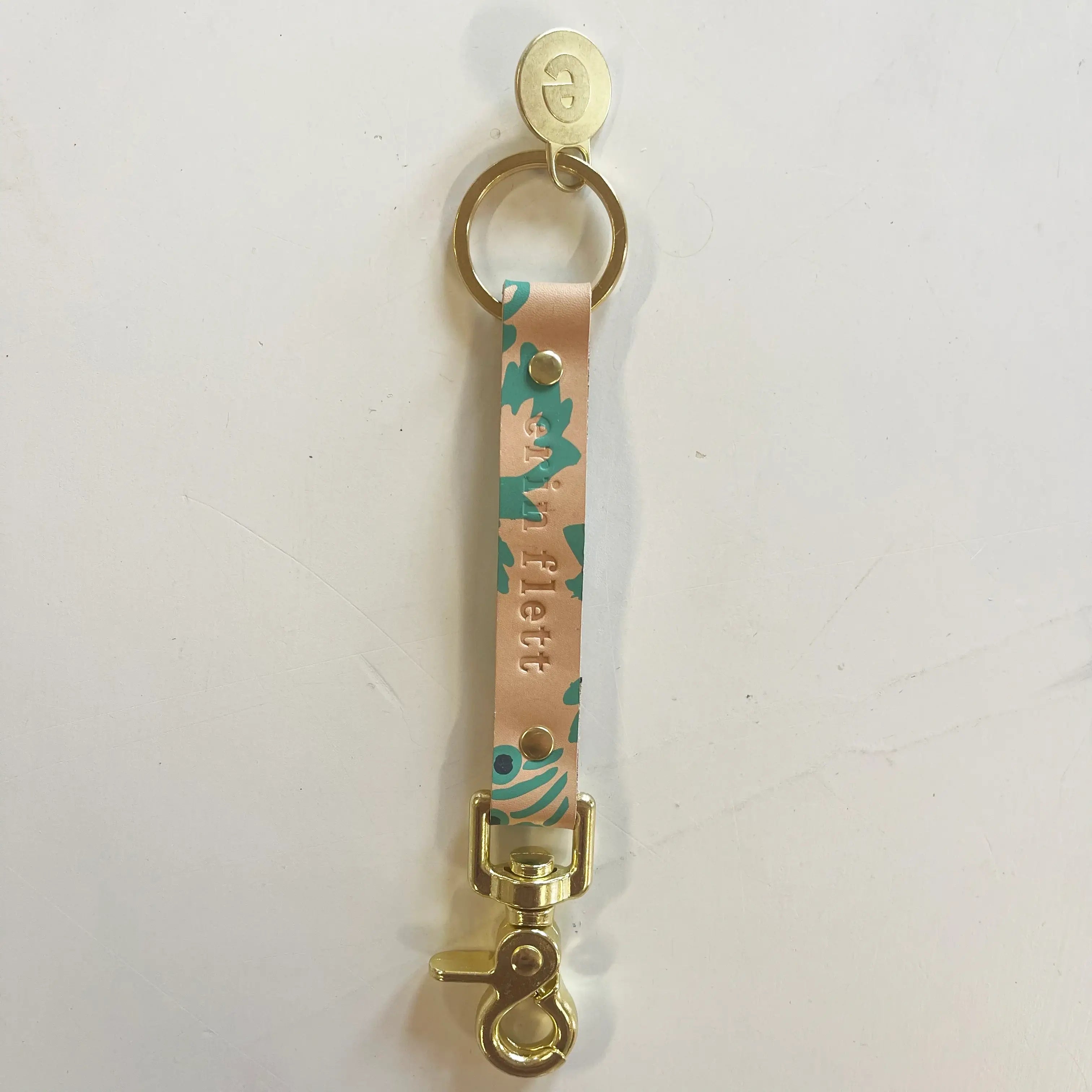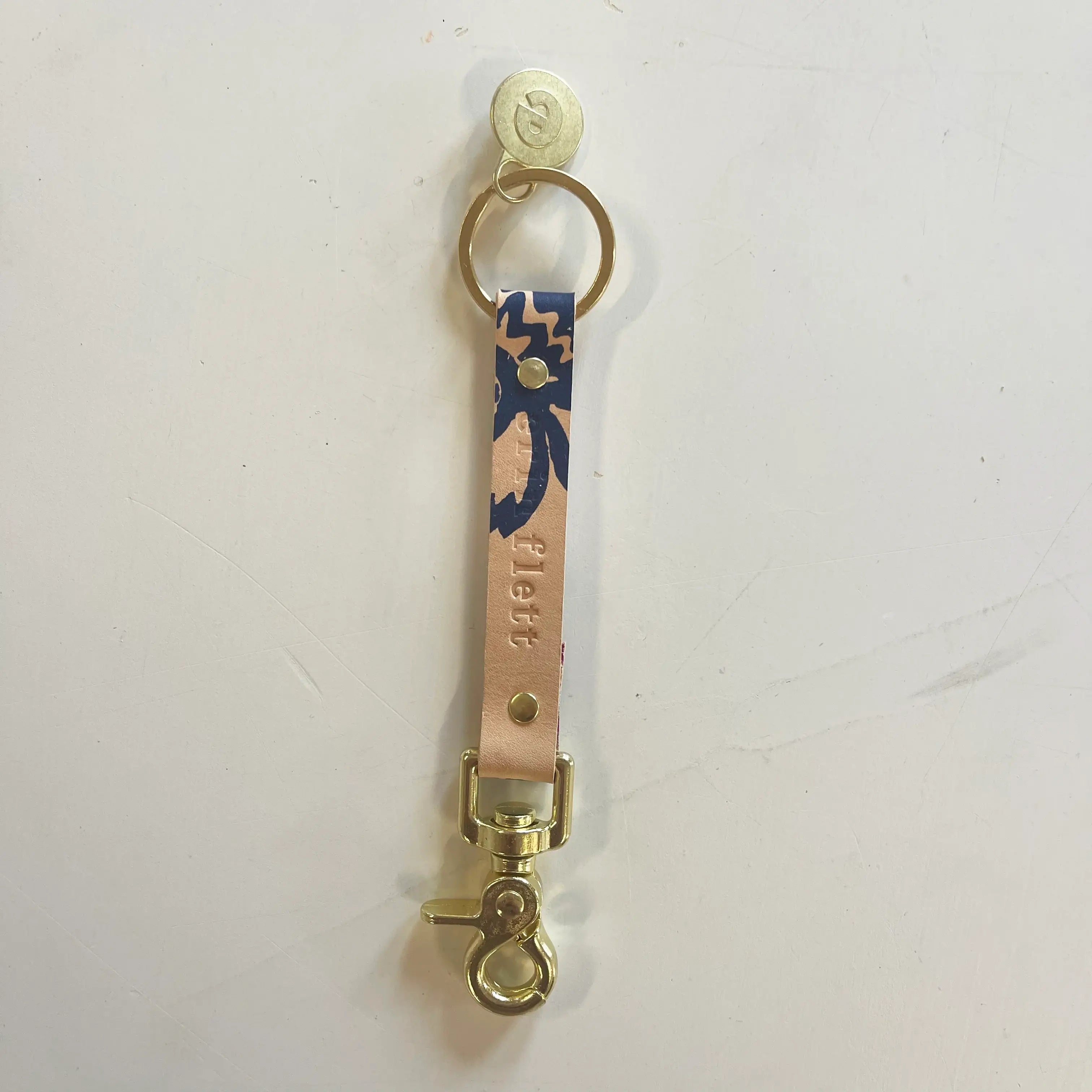Who doesn't need a cool new key ring? For the college student, the new driver, or you...these hand-printed veggie tan leather solid brass key rings are the perfect length and width to hold in your hand so you snap them to any bag so you don't lose them! They even have our new little "e" brass charm! Each one is a different pattern so they will show a variety of the pattern you choose. Not one will be alike!