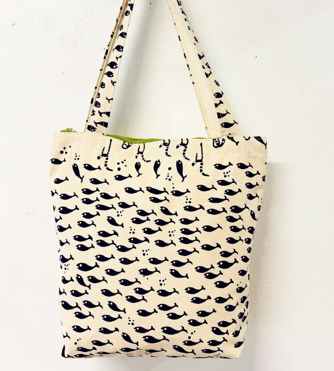 Our NEW SHORT carry-all tote bags are super simple and truly can carry it all. Hand-printed and sewn in our studio in Maine. Served with attention to detail to ensure a long rugged life. Includes top zipper and printed handles.