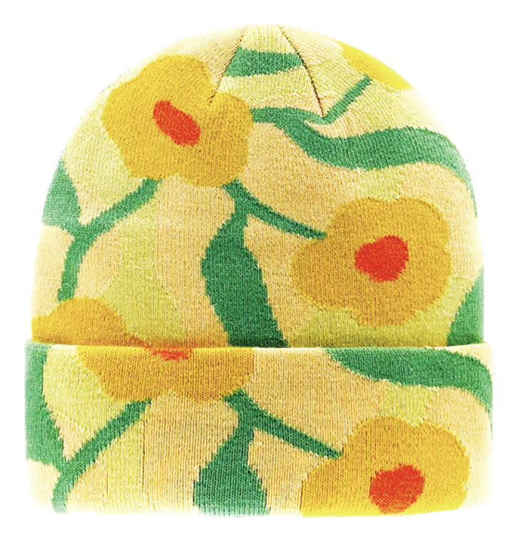 Bright, cheerful, and full of personality, this Yellow Floral Knit Beanie brings sunshine to chilly days. Featuring oversized daisy-inspired flowers in golden yellow with warm orange centers and flowing green stems, the design radiates energy and positivity. Its vibrant color palette makes it a standout accessory that instantly elevates any winter look. Crafted from soft, high-quality knit fabric, this beanie offers warmth and durability while remaining lightweight and comfortable. The fold-over cuff provides a secure fit and extra insulation, making it both stylish and practical. Perfect for outdoor wear, casual layering, or as a fun streetwear piece, this beanie combines bold design with cozy function. ✿Key Features * Vibrant Floral Design – Bold yellow daisies with green stems for a lively, eye-catching style. * Cozy & Durable – Soft knit construction ensures warmth, comfort, and long-lasting wear. * Versatile Styling – Ideal for outdoor activities, everyday looks, or playful fashion accents. ✿