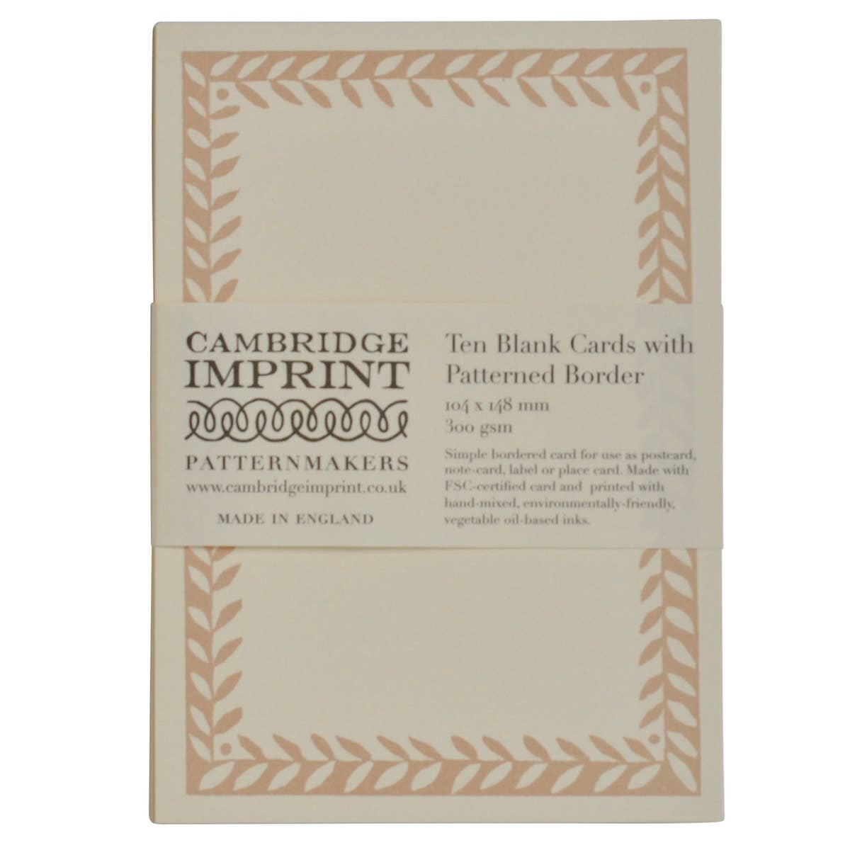 10 Postcards with Patterned Border in Plaster Pink: A packet of ten simple cards with a patterned border. 105 x 148 mm. Suitable for use as a postcard, note card, label or place card. A match for our Patterned Envelopes in Charleston Roundel.