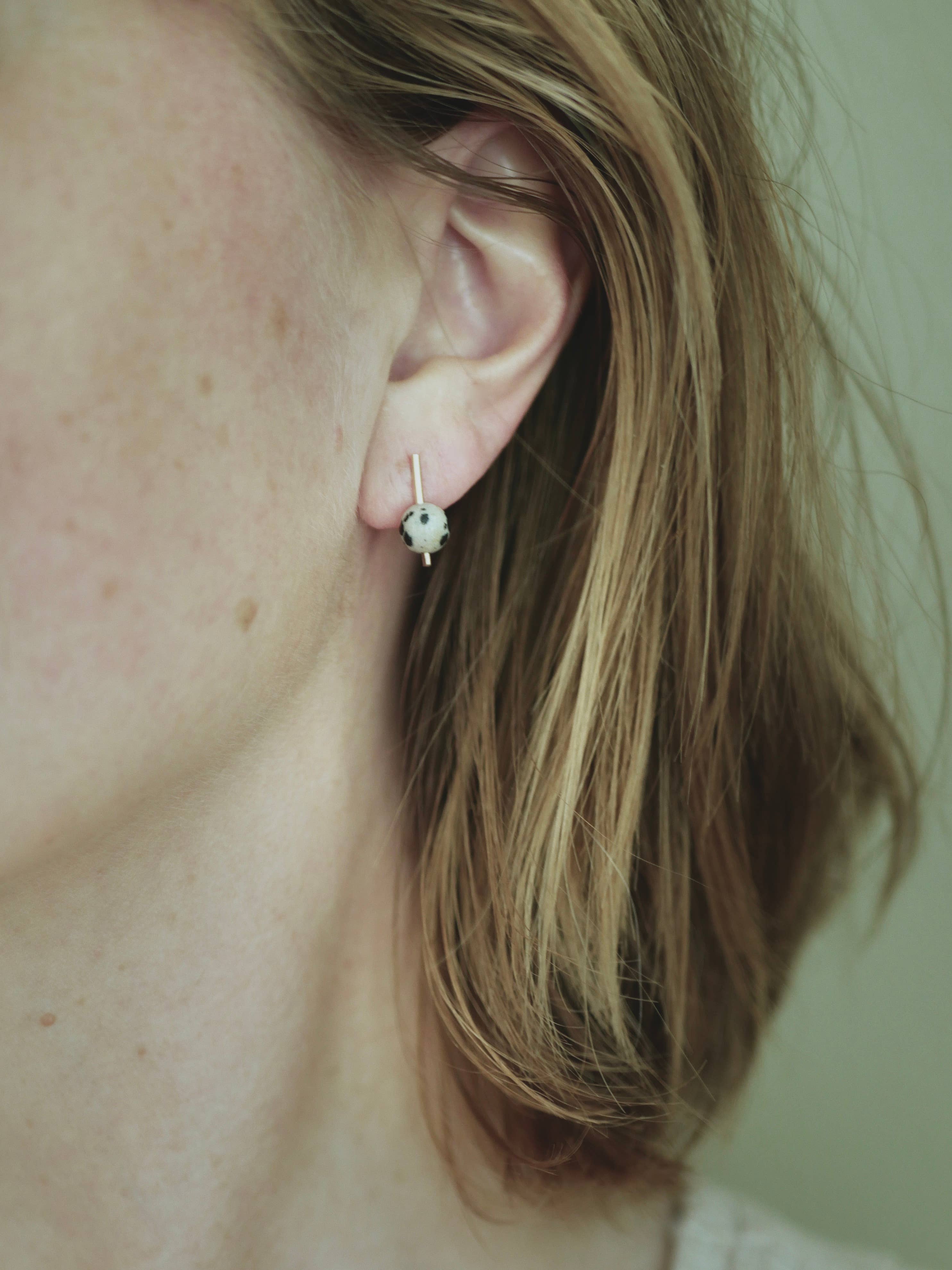 An ode to the miniature, these darling studs feature dreamy natural stones, each containing its own little world of magic. Every pair is thoughtfully curated to match. Due to the nature of gemstones, each set is unique.