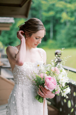 “It was really important to us to find a florist who prioritized locally grown blooms. [Abby’s] style is everything I could have hoped for and I am so thankful we went with her. I just can’t say enough wonderful things about her work, her kindness, and her transparency. We were all so sad to leave the florals behind. If I could have preserved every floral element I would have, they were just that beautiful!”