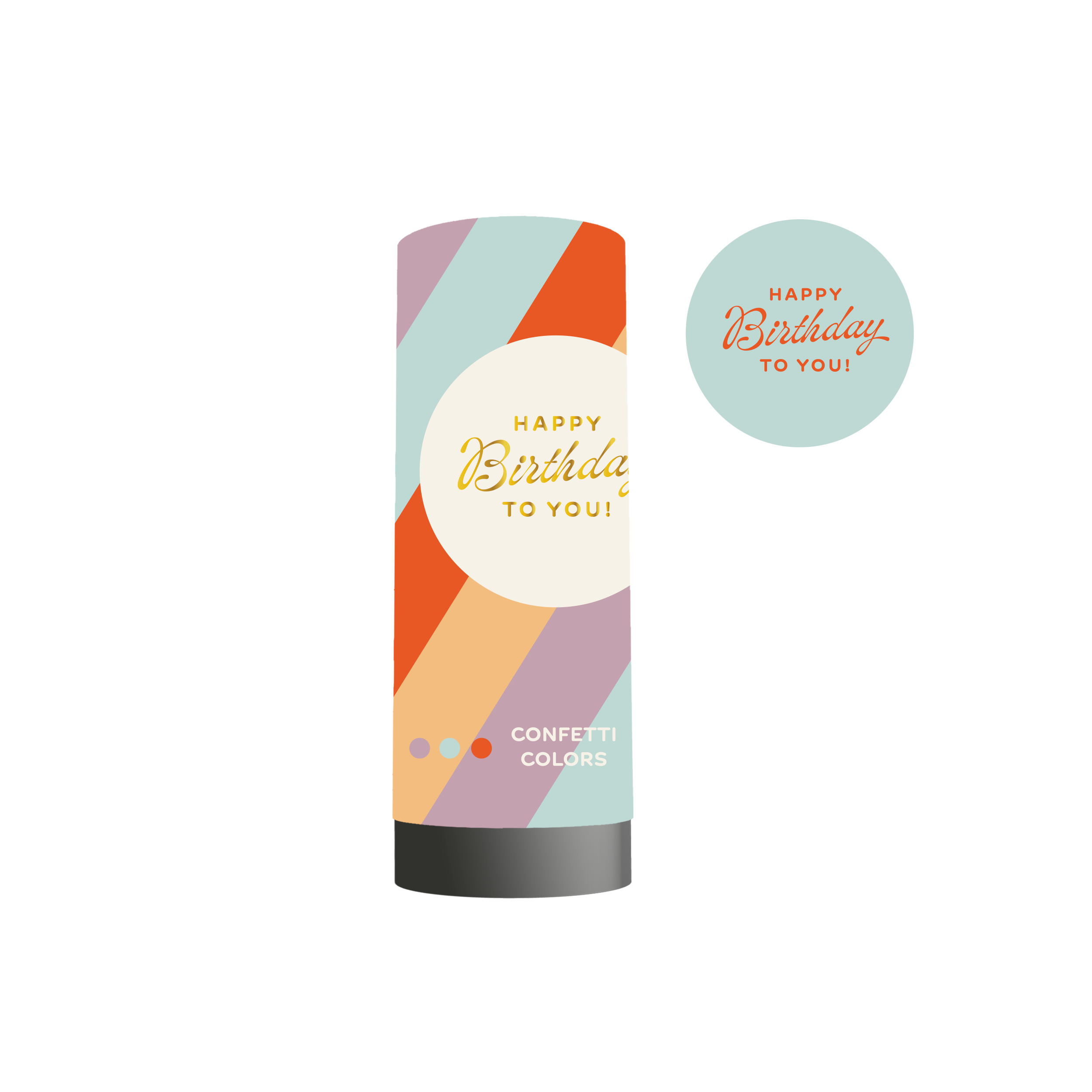 Celebrate another trip around the sun with our specialty confetti popper! Has gold foil accents, with red/blue/purple biodegradable confetti. Sold individually.