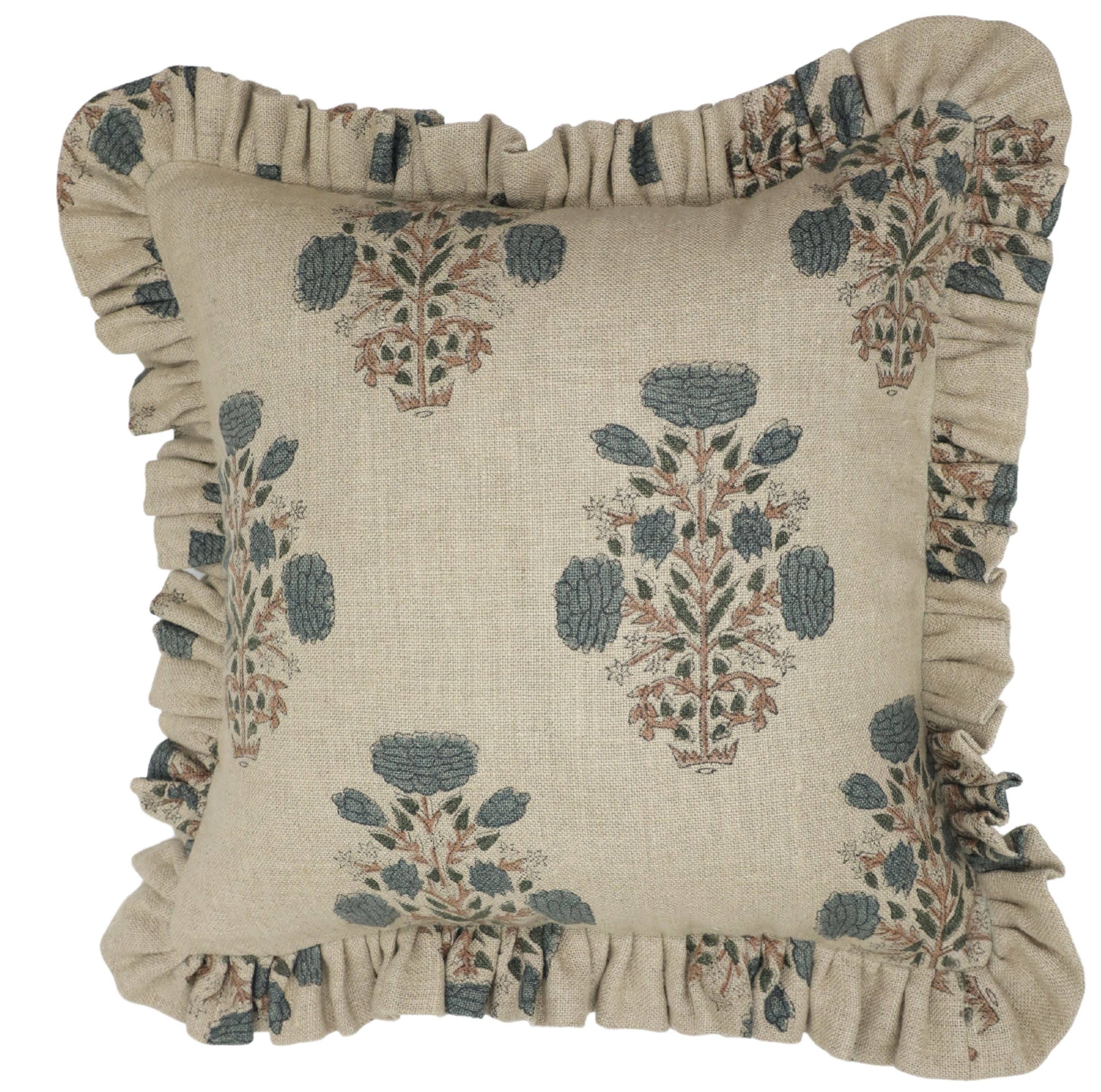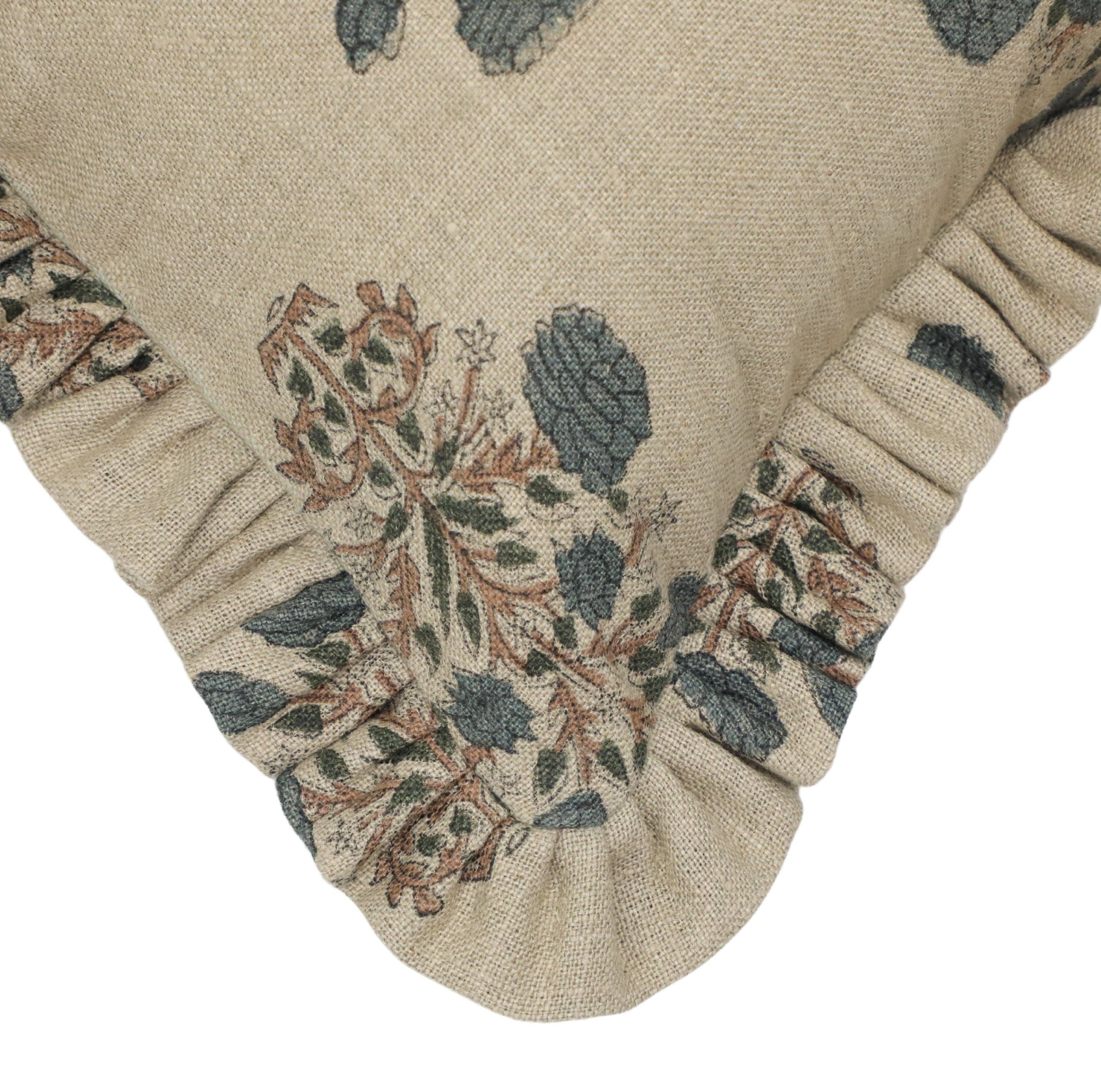 Unique Thick Linen Block Print Frill Pillow Cover-Swadesh